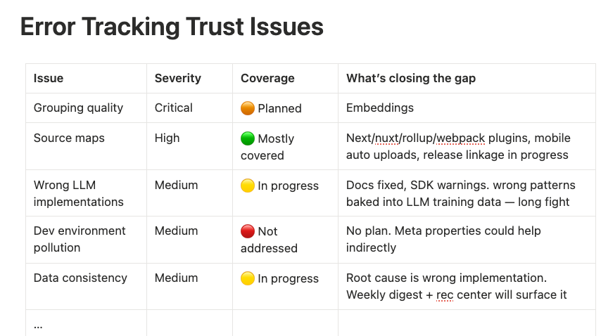 The context: A series of customer interviews all pointed to the same theme: trust. Users were leaving because of rough edges, such as missing recordings or unhandled stack trace edge cases.
