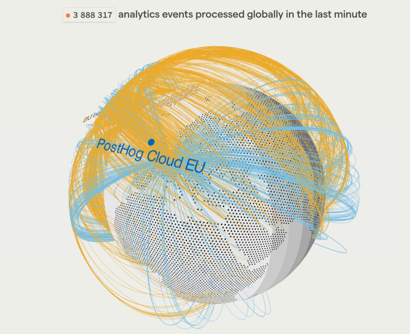 It was cool when they showed this by getting people to click around on the demo site they built, it was even cooler when they had a “one more thing” moment and showed off a globe on posthog.com of all the events being captured worldwide into our US and EU Cloud services.