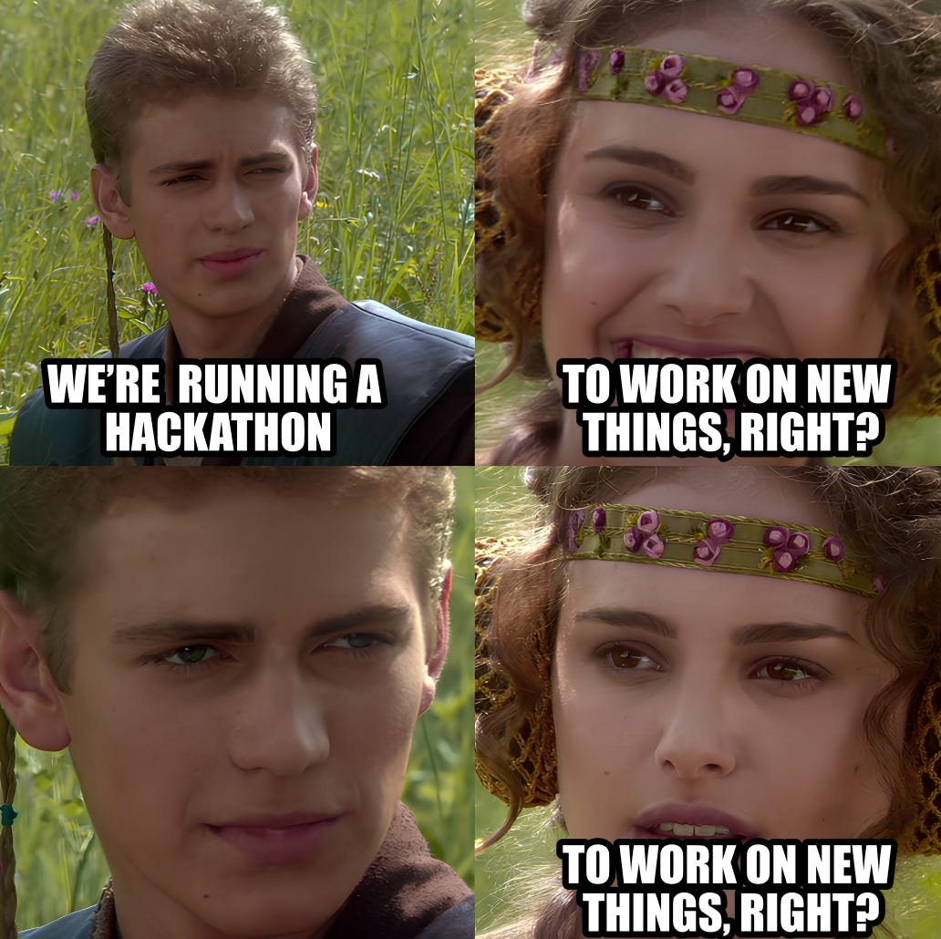 Hackathons fail when they’re not separate from regular work or used as cover to accelerate existing work. We have two simple rules to prevent this: