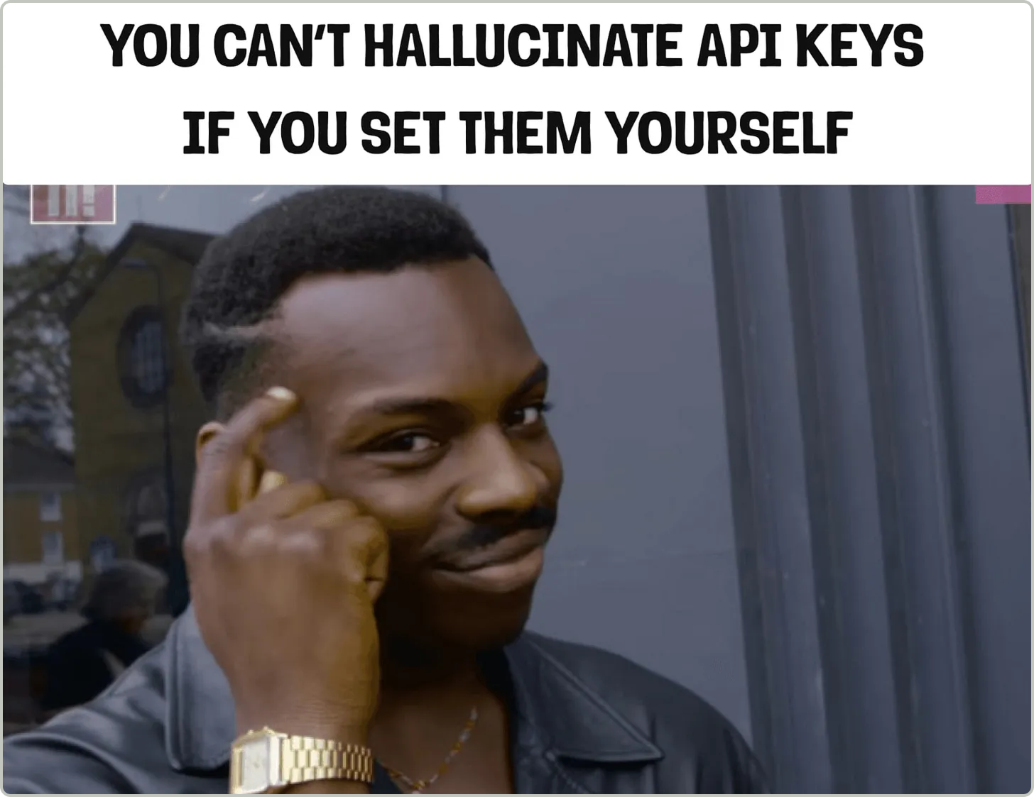 Never hallucinate an API key. Instead, always use the API key populated in the
